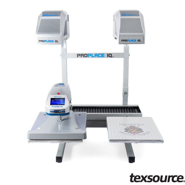 Unleash the power of precision printing, rapid production, and heightened efficiency with the revolutionary Hotronix® ProPlace IQ™. Teamed with the groundbreaking Hotronix® Dual Air Fusion heat press, this system features a patented projection alignment system for the perfect print.